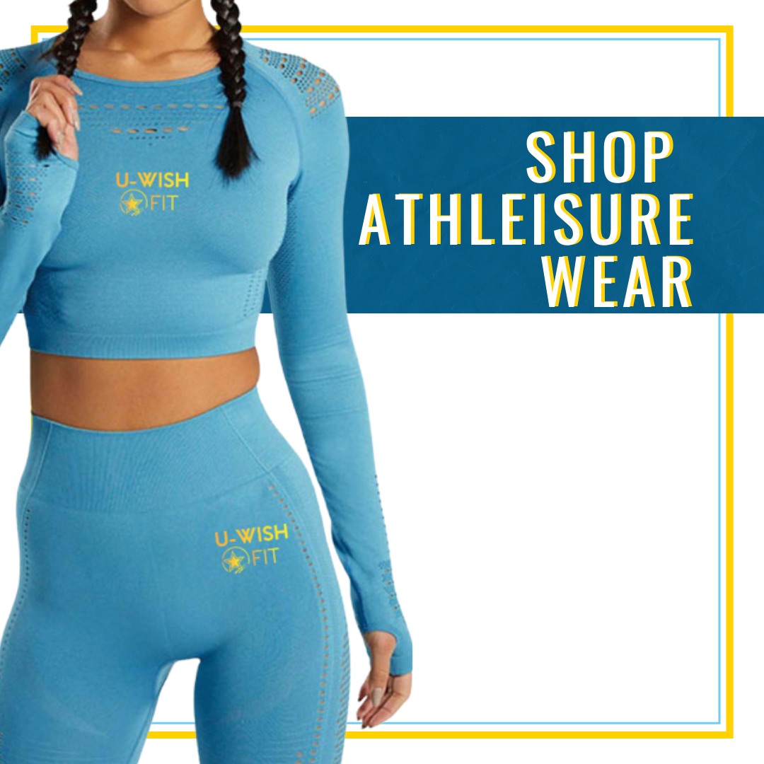Hand in hand with our fitness coaching, U–Wish Fit has merchandise to aid in reaching your goals. From resistance bands, reusable sauna wraps, and waist trainers. Our athleisure apparel is cute and comfortable for lounging, busy on the go gear, and looking the part while exercising.